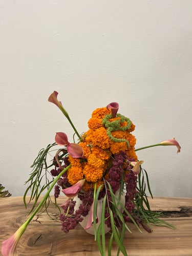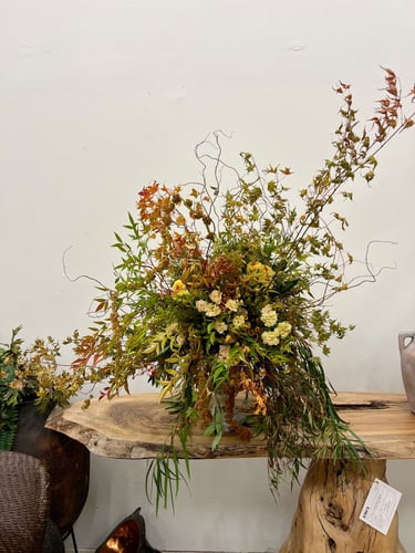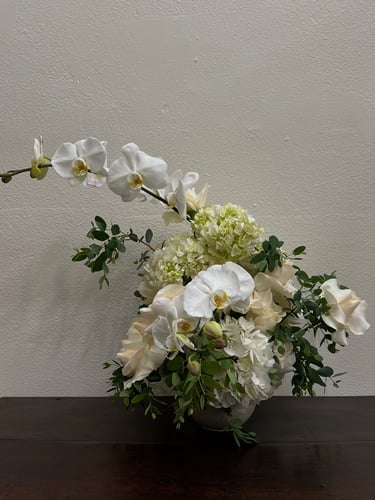custom arrangements designed with seasonal blooms and foliage.